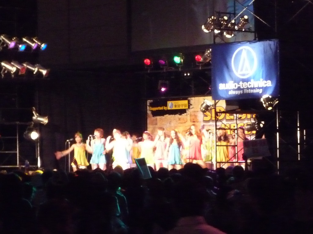 遠めからステージを眺めてみるに、明らかに強烈なピチピチ感を感じる。なぜならそこに大量の女子がいる。大量のノースリーブのワンピースが色とりどりでとにかくまぶしいって日本語がおかしくなってるが少なくともAKBよりはかわいく見える。逆に客席は野郎どもの汗で充満しておりもはや毒ガスレベル。