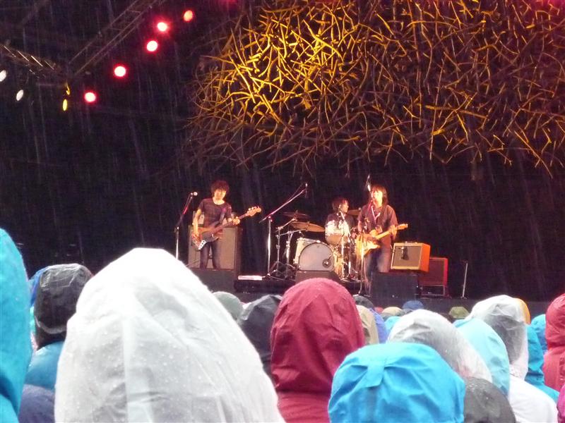 「雨だけどサニーデイサービスです」と言って軽く笑いを取るも、逆に、雨が彼らのステージの雰囲気をグッと高めたように感じられた。